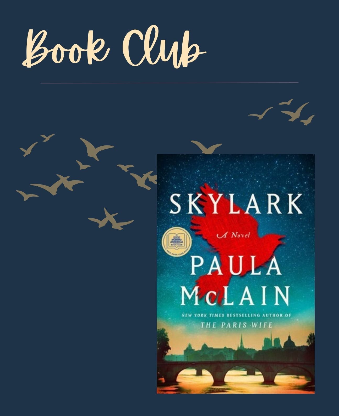Join us in reading Skylark by Paula McLain and then meeting at Pixie Hollow for light refreshments and book discussion!